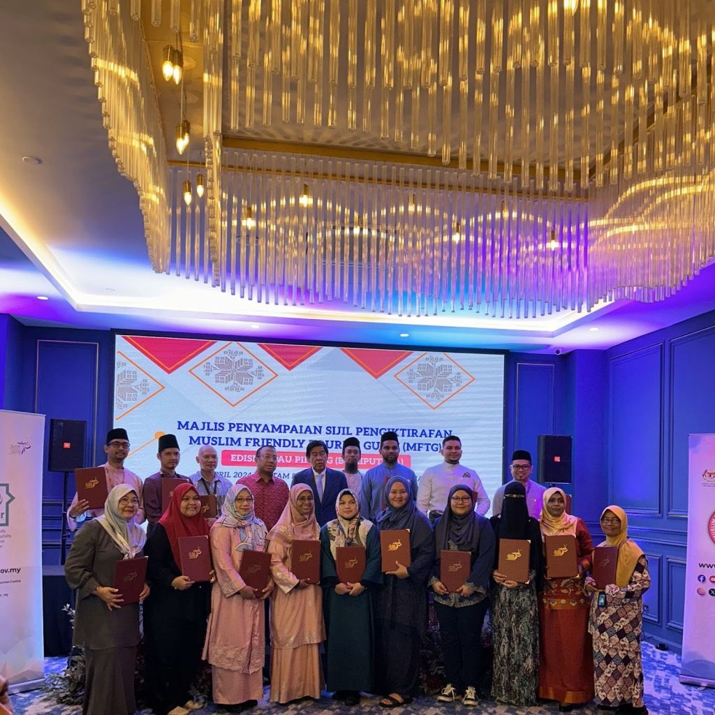 PULAU PINANG, 30 APRIL 2024: Seramai 28 pemandu pelancong Bumiputera telah menerima pengiktirafan sebagai Muslim-Friendly Tourist Guide (MFTG) di Majlis Penyampaian Sijil Pengiktirafan MFTG oleh Islamic Tourism Centre (ITC) pada majlis yang berlangsung di Bertam Resort, di Kepala Batas, Pulau Pinang hari ini. Majlis ini merupakan acara terakhir di dalam program libat urus ITC bersama penggiat industri pelancongan di Pulau Pinang yang berlangsung selama 5 hari, dengan misi memperkukuhkan ekosistem Pelancongan dan Hospitaliti Mesra-Muslim (MFTH) pulau ini, menerusi tiga buah acara.
